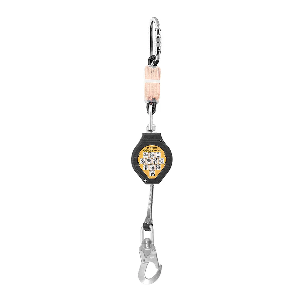 Kompakt fallskyddsblock för vertikalt arbete, utrustat med expanderbart band av textil i ett slitstarkt plasthölje. Låsmekanismen är inbyggd i ett stötsäkert hölje med svivelfäste i den övre delen av enheten, och en nedre karbinhake med svivel för smidig rörelse under arbete. Ingen separat stötdämpare krävs.